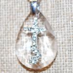 Silver "Cross On 4 Steps" On An Acrylic Teardrop Pendant (3¼" X ¾") Necklace 2 (4 photos)