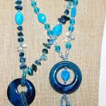 Collection Of 2 Blue Ring Slip-Over Necklaces With Blue And Green Accents 36" L (3 photos)