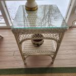 Lloyd Flanders Wicker Side Table W Glass Top (5 photos)