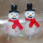 Vintage "Fuzzy" Snowman Earrings Pair (1" X ½") With Black Hats And Red Ribbons (2 photos)