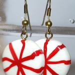 Vintage Red & White Peppermint Earrings Pair (¾" Diam.) With A Wire Hook Clasp (2 photos)