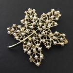 Vintage Goldtone, Full Pearl, Maple Leaf Brooch (3 photos)