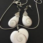 Beautiful Very Nice Stone Heart Pendant And Matching Earrings Silver Toned (3 photos)