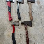 Mixed lot of 5 hatchets / camp axes including both modern and vintage pieces.