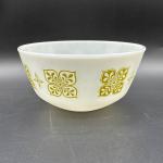 Vintage Fire-King Anchor Hocking Milk Glass Mixing Bowl Gold Floral Pattern Usa (13 photos)