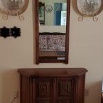 Lot 119L: Vintage Carved Wood Console Cabinet & Mirror With Decorative Hanging P (3 photos)