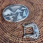 Lot Of 2 Vintage Sterling Silver Belt Buckles Mountain Scene & Dragon Frame (5 photos)