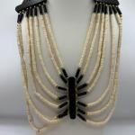 Lot 58: Vintage Carved Wood Safari Necklace, Abalone Shell Buckle, Green Double (23 photos)