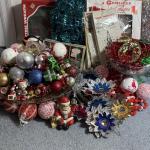 Lot 52: Attic Finds Vintage Holiday, - Ornaments, Tinsel, Garland, Beads, Alumin (9 photos)