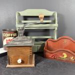 Lot 99: Vintage Coffee Grinder, Wooden Wall Shelves And More (8 photos)