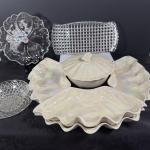 Lot 89: Maddux Iridescent Lazy Susan Dishes, Glass Dishes And Tray (10 photos)