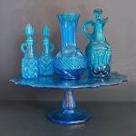 Lot 151: Vintage Blue Glass Pedestal Cake Stand, Cruets & Vase (11 photos)