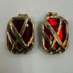 Vintage-style clip-on fashion jewelry featuring rectangular red stones encased… Read More →