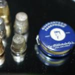 grouping of five thimbles two are stamped sterling, one maybe silverplate, one… Read More →