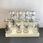 Lot 64: Ten Vintage Federal Glass "Sportsman" Series Silver Rimmed High Ball Dri (12 photos)