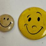 Lot Of 2 Retro Happy Face Yellow Fun Pinback Button Pin (3 photos)
