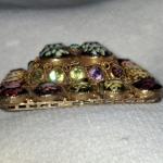 Multi color glass in gold tone filagree design. Very sought after by collectors.… Read More →