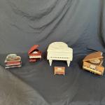 This lot contains five tiny pianos! First we have a plastic music box piano,… Read More →