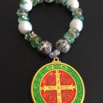 Vintage Ceramic And Crystal Light Green Glass Bead Bracelet With Catholic Charm (3 photos)