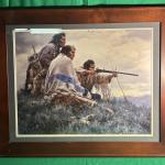 Framed Western art print depicting three Native figures in a natural setting.… Read More →