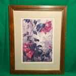 A framed floral print featuring vibrant red and pink flowers with green leaves.… Read More →