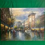 An oil painting on canvas depicting a city street scene with pedestrians,… Read More →