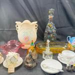 tea cups, Amber celery glass Fenton cranberry, perfume bottle… Read More →