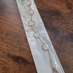 Cute gold tone bracelet with milky white clover charms. 7 inches with extender.… Read More →