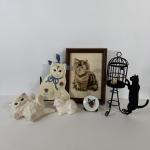 Lot 18K: Embroidered Cat Wall Art, Lenox Poppies Barnyard Kitten Cookie Press & (17 photos)