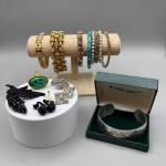 Lot 97: Costume Jewelry Collection, Kirk Stieff Pewter Cuff Bracelet, Avon Perfu (29 photos)