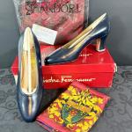Lot 194: Salvatore Ferragamo Navy Blue Pumps Size 7 With Fashion Scarves (8 photos)
