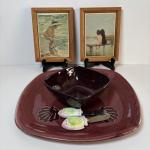 Lot 112: Beach Themed Kemberly Enterprises Framed Wall Tiles, Signed Pottery Chi (13 photos)