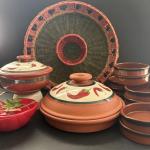 Lot: 134: Red Chili Pepper Stoneware Bakeware (2), Mud Pie "Tomato" Dish, Wicker (26 photos)