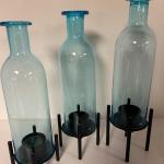 Set of 3 Blue Glass Bottle Hurricane Candle Holders… Read More →