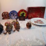 Ceramic turkeys, 4 Christmas decorative tins, 2 Christmas plates, wood ornament,… Read More →