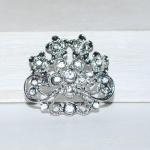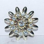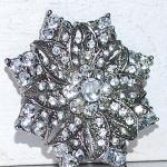 Silver-Colored Bejeweled 8 Petal Star Flower Brooch (1¾" Diam.) On A Silver Ton (2 photos)