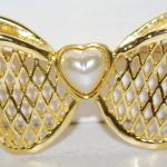 Heart Shaped Pearl-Style Stone Bowtie Brooch (2¼" X 1¼") On A Grill Gold Tone (2 photos)