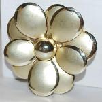 Vintage Petal Flower Brooch (2¼" Diam.) With Center Half Globe On A Gold Tone S (2 photos)