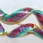 Glittery Enamel SWIRL BROOCH (3" x 1") in REDS & GREENS on a Gold… Read More →