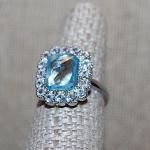 Size 7¼ Marked .925 Light Blue Rectangle Glass Stone Ring With A 16 Round Clear (5 photos)