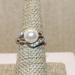 Size 7½ FAUX White PEARL Ring with Swirl Clear Stones Sides Ring on a Silver… Read More →