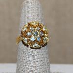 Size 7½ Marked .925 - Gold Colored Sculptured Setting Ring With Small Clear Acc (5 photos)