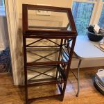Lot includes a wooden and glass library stand with hinged slanted top. Piece has… Read More →