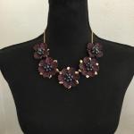 Beautiful, Signed Gold, Toned, Plum, Purple Flower Statement, Necklace (3 photos)