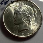 1925-P Ms64+/Uncirculated Condition Peace Silver Dollar Coin #6 As Pictured. (2 photos)