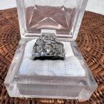 Bold vintage sterling silver ring featuring a heavily textured nugget-style top… Read More →