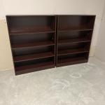 Lot includes a matching pair of wooden bookcases that measure 36” x 12” x 48”H.… Read More →