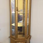 Lot 45L: Slim Gold Finish Lighted Curio With Storage Cabinet (7 photos)