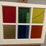Multi-Colored Stain Glass Window Approx 23/4" X 19 1/2" (3 photos)