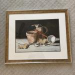 This lot contains a framed and signed still life of some pots, leaves and… Read More →